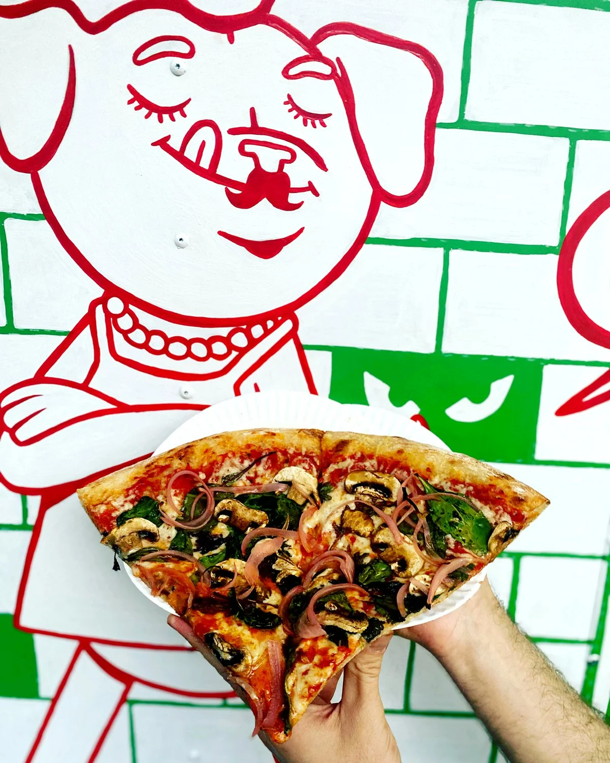 Da den legendariske veganske kokken Rob Lordi spurte meg om jeg ville være med på dette food truck-prosjektet, sa jeg umiddelbart ja! Navnet var en ordspill på «Ray's Famous», en ikonisk pizzabutikk i Manhattan, New York, som spesialiserer seg på store pizzastykker. Vi bestemte oss for å kombinere konseptet med Rob’s kjærlighet til å redde hunder av bulldog-raser, og slik ble «Stray the Pizza Pittie» født.