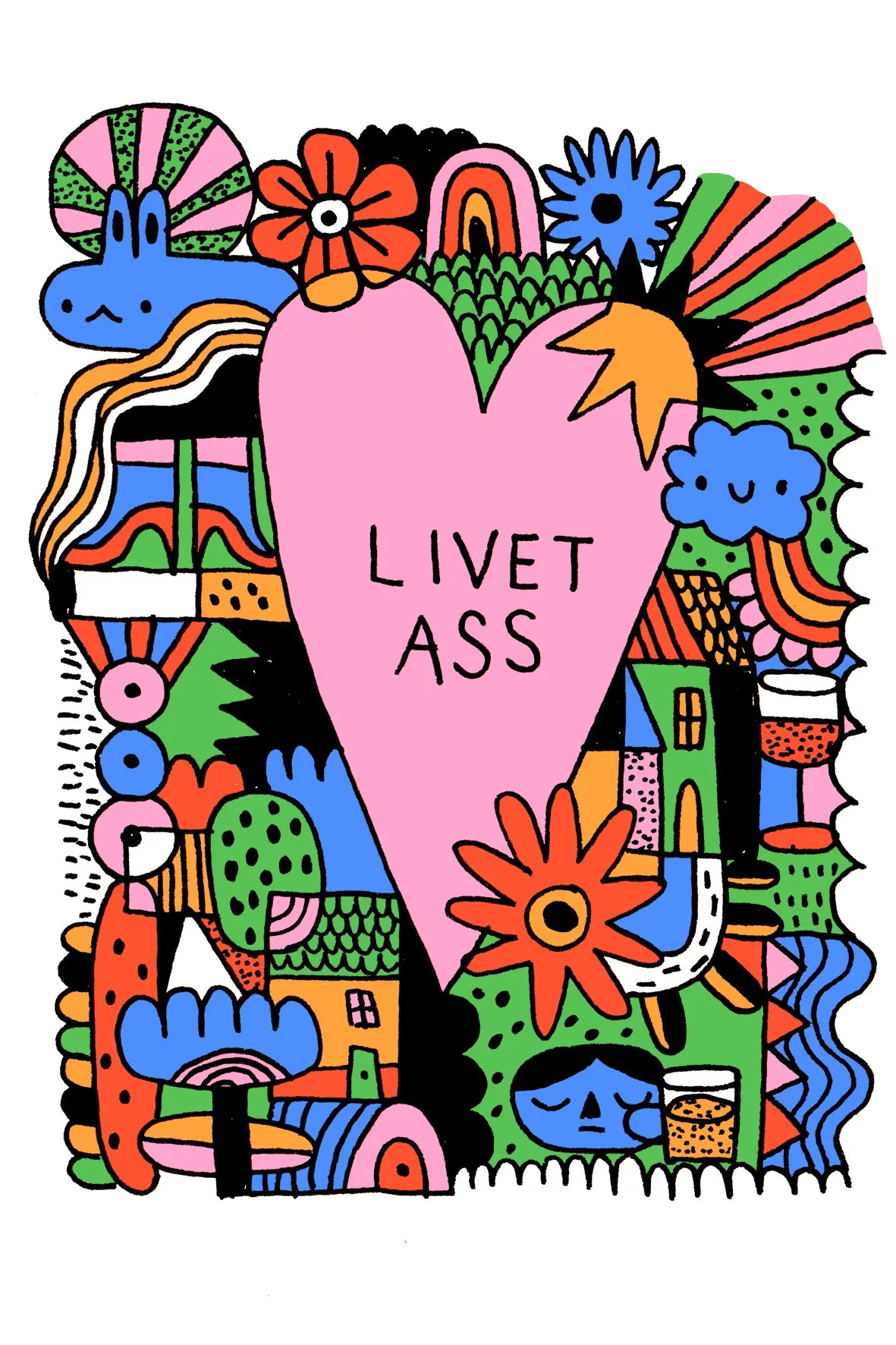 En serie illustrasjoner med skråblikk på livet. Livet ass!